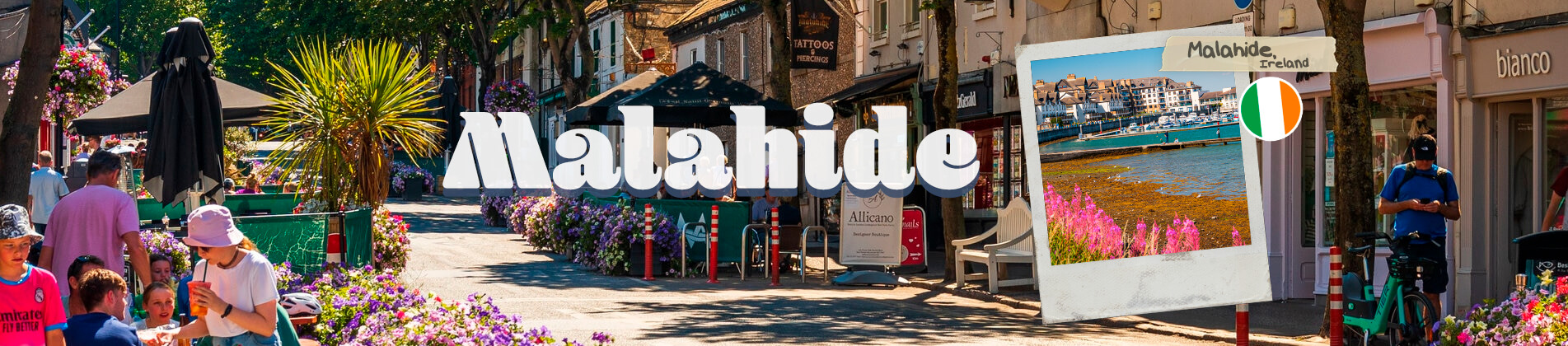 Malahide es un precioso pueblo costero en las afueras de Dublín que ha mantenido la atmósfera pacífica e invariable, a pesar de su desarrollo económico: las puertas de colores, los techos inclinados, las grandes cestas de flores que cuelgan de los letreros de las tiendas, las calles cuesta arriba pero sobre todo el ambiente tranquilo y sereno que se percibe en la calma de la gente.
